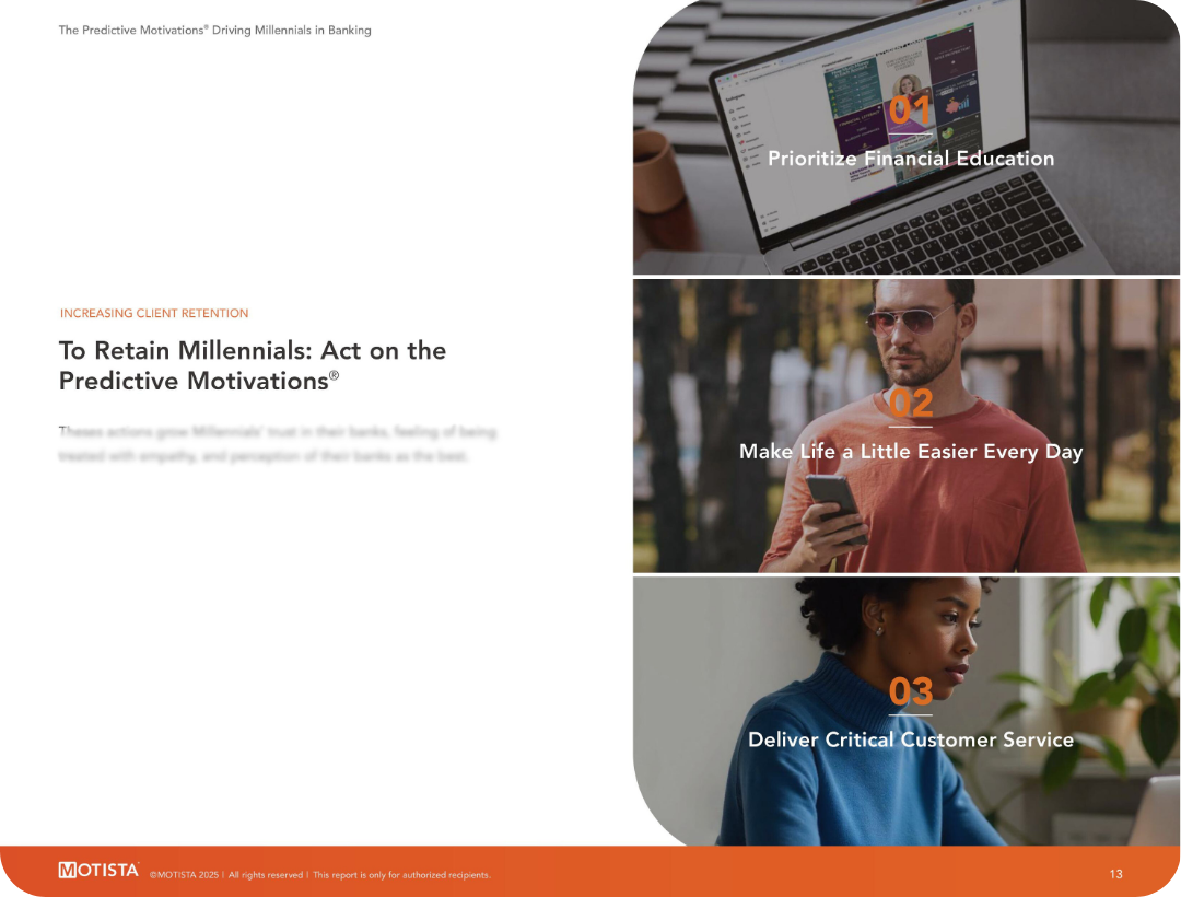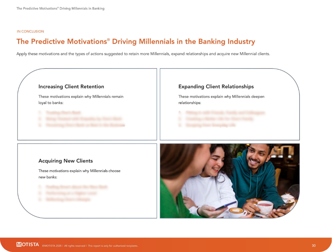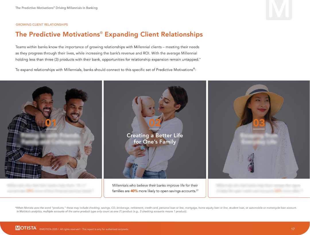 Motista’s reports identify the precise motivations that predict that Millennials will open accounts, remain loyal and deepen relationships.