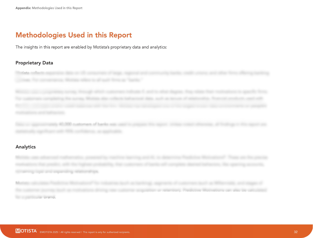 Motista’s reports are built for teams within US banks, credit unions, brokerage firms and wealth managers of all sizes.